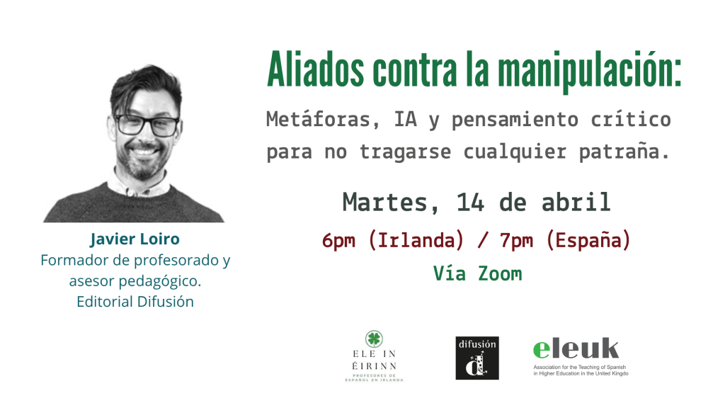 Los días que nos han tocado vivir son complejos y el desarrollo del pensamiento crítico se vuelve cada vez más relevante. En este taller os invitamos a explorar cómo las metáforas conceptuales y expresiones metafóricas en textos periodísticos reflejan ideologías y construyen significados. A través del análisis de artículos auténticos y la IA, los participantes desarrollarán su pensamiento crítico, aprendiendo a identificar cómo los marcos metafóricos influyen en la percepción de la información y la conformación de la realidad.